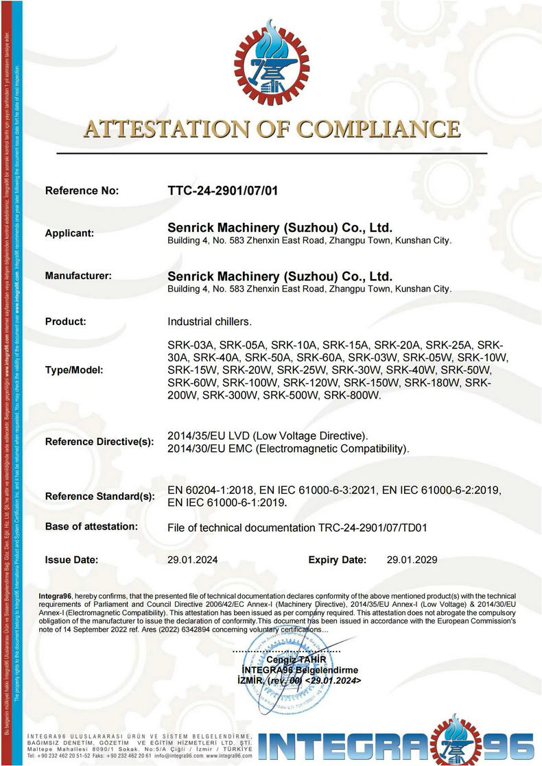 我們應(yīng)該都知道冷水機(jī)是一種可以提供恒溫、恒流、恒壓的冷卻水設(shè)備,在工業(yè)生產(chǎn)的過程中使用是非常多的。大家知道這種機(jī)械是怎樣進(jìn)行使用的嗎?我們需要向機(jī)內(nèi)水箱注入量的水,通過冷水機(jī)制冷系統(tǒng)將水冷卻;再通過水泵將低溫冷卻水送入需冷卻的設(shè)備;然后將熱量帶走后溫度升高再回流到水箱,繼續(xù)進(jìn)行制冷使用。